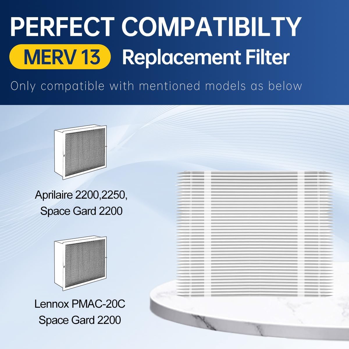 201 MERV 13 Replacement Air Filter Compatible with HealthyAir 13 Space Gard 2200 2500 2250 Whole-House Air Cleaner and LennoxPmac-20c (X0445),20x25x6 Airpurifier Filter, 2 Packs