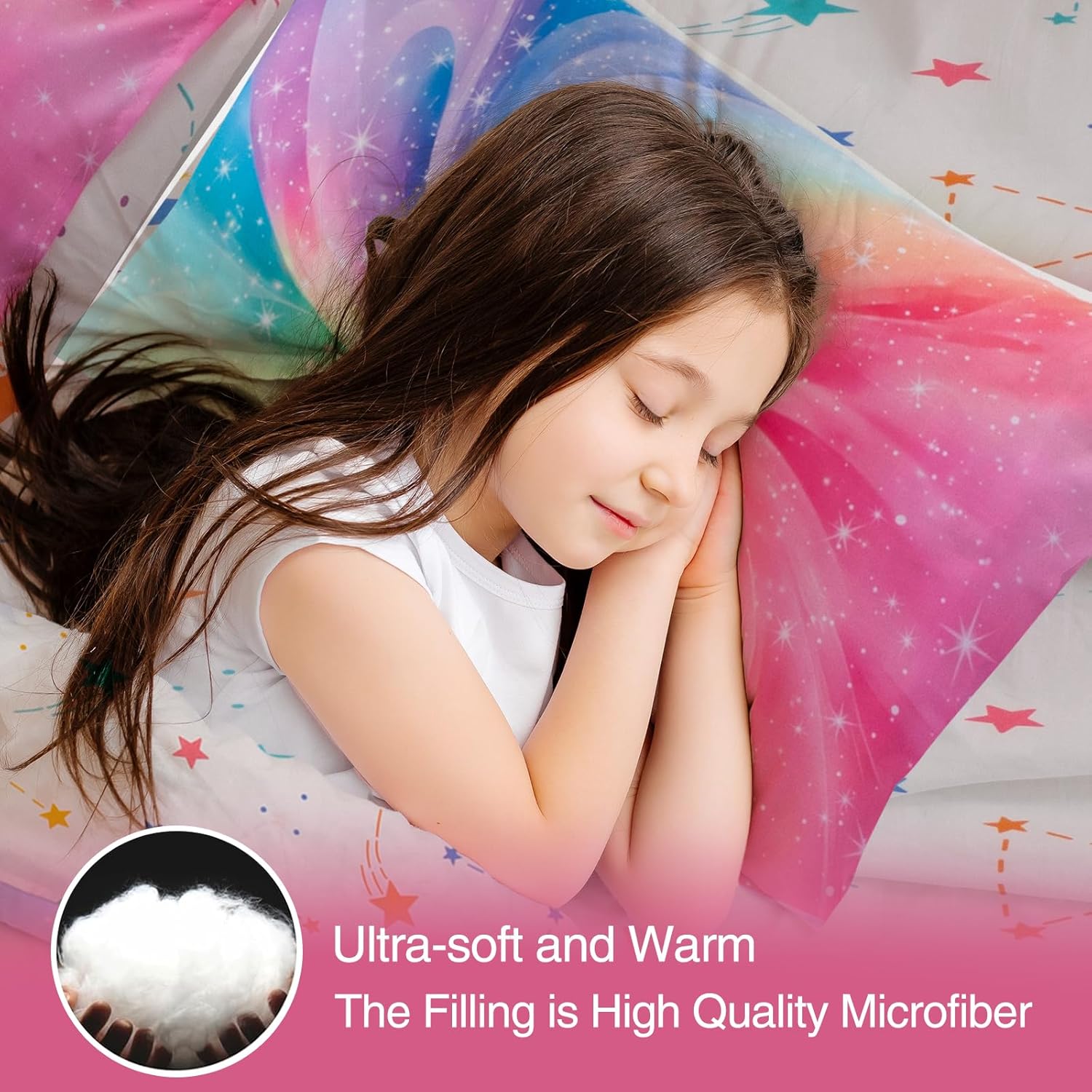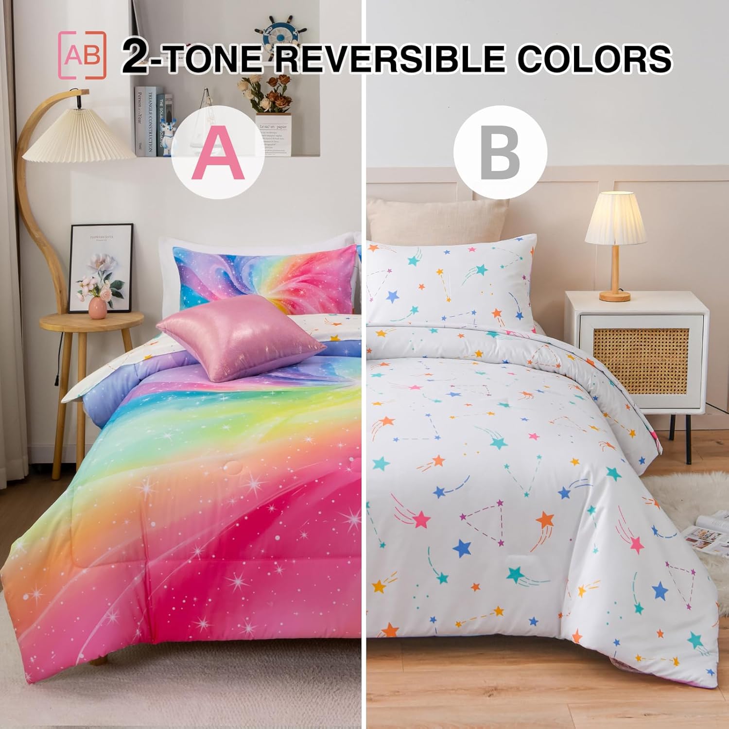 A Nice Night 6Pcs Swirling Galaxy Dreamy Comforter Set, Colorful Rainbow Gradient Glitter Comforters, Ultra Soft Bedding,Queen,PinkGreen
