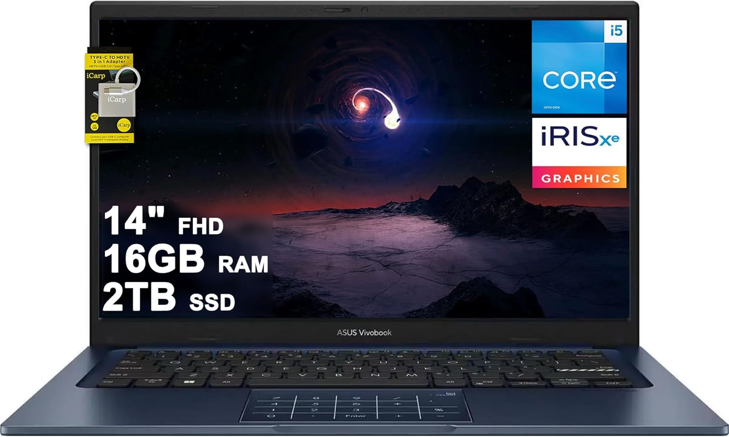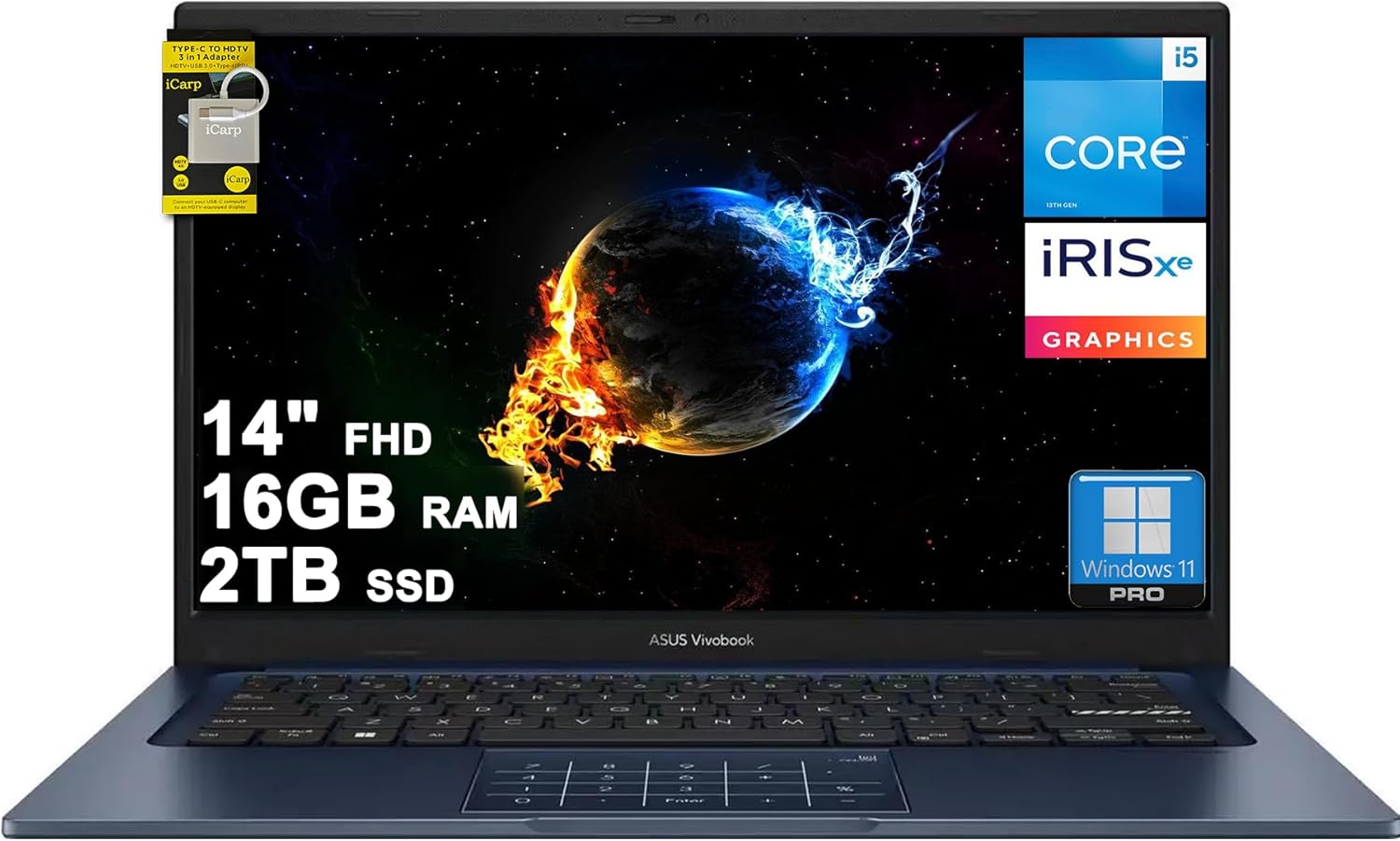 OVERVIEW: Product Details: Microprocessor: Intel 10-core i5-1334U Processor (Max Boost Clock Up to 4.6GHz, 12MB SmartCache, 12 Threads) Memory:24GB DDR4 Storage:512GB SSD Operating system: Microsoft Windows 11 Professional Graphics & Video: Integrated Intel Iris Xe Graphics eligible 14" FHD (1920 x 1080) Anti-glare Key Features: Bluetooth: Yes Webcam: Yes SonicMaster: Yes Ports: 1 x Type-C 3.2, 2 x USB-A 3.2, 1 x USB 2.0, 1 x HDMI 1.4 Battery: 42Wh Additional Information: Dimension: 8.42" x 12.79" x 0.7" Weight: 3.09 lbs