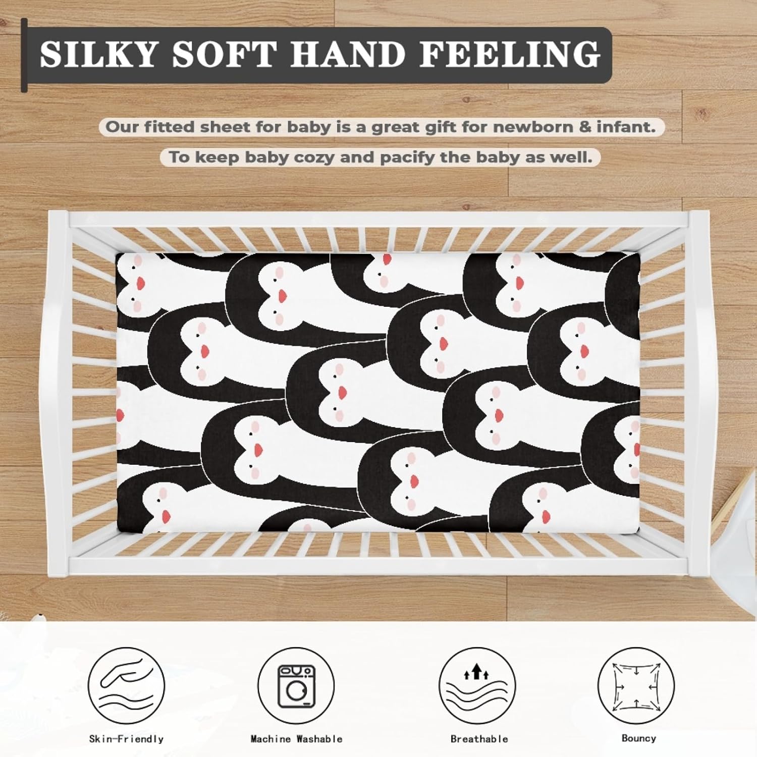 Ideal Fit Size:Measuring 28" x 52" x 8"Material Soft:PolyesterDurable Elastic Band around EdgesThe elastic bandage wraps around to ensure that our crib mattress sheets fit your crib mattress snugly, not loose, but flat, giving your baby a comfortable bedding.Easy Care Mattress Sheet Machine wash cold on gentle cycle.Tumble dry on low heat or line dry. Avoid directly heat.Wrinkle resistant.Crib sheet stays new after every wash. No need of ironingEasy to set upEach sheet comes with elastic straps that make it easy to remove the sheet from the crib mattress or take it off.Neutral for boys and girls, they create a cozy, secure sleep environment, promoting better sleep while blending with your decor.