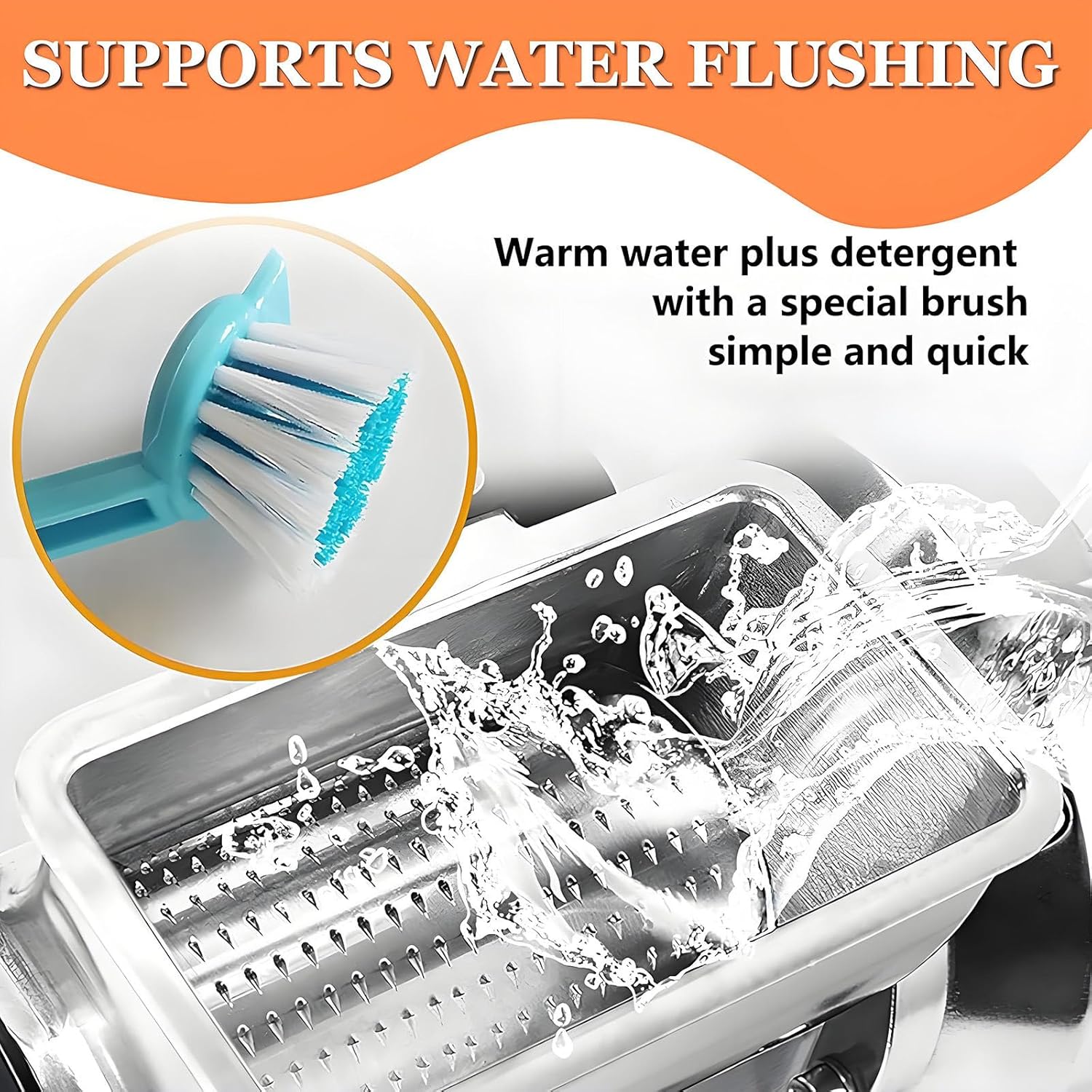 Introducing our 550W commercial-grade electric cheese grinder, the ultimate solution for efficient meal preparation. This electric rotary cheese grater is designed to meet the demands of both professional kitchens and home cooks, providing exceptional performance in cheese grinding and beyond. With its powerful 0.75HP copper core motor, this electric cheese grinding machine quickly crushes cheese, butter, and other ingredients into uniform filaments or crumbs, significantly enhancing your cooking efficiency. The high-quality 304 stainless steel blade ensures durability and long-lasting performance, while the high-strength ABS body withstands the rigors of daily use without warping. Cleaning is a breeze with our detachable design—the blade and container can be easily removed and washed, allowing you to maintain hygiene effortlessly. This multi-functional appliance is not just limited to cheese; it can also handle bread crumbs, nut crumbs, chocolate, and more, making it a versatile addition to your kitchen. Ideal for pizza shops, baking workshops, restaurants, and home kitchens, this electric cheese grinder adapts perfectly to any culinary environment. With a production capacity of 40kg (88.18lbs) per hour, it’s perfect for high-demand settings. Upgrade your kitchen with our 550W commercial-grade electric cheese grinder and experience the difference in your meal preparation. Enjoy the convenience, versatility, and efficiency that this electric cheese grinding machine brings to your culinary creations. Product specifications: - Material: Alumina, Stainless Steel - Color: Silver - Mount Type: Desktop - Voltage: 110V/220V, 50Hz/60Hz - Product Size: 40.5*24*43cm - Gross Weight: 18kg Elevate your cooking experience today!