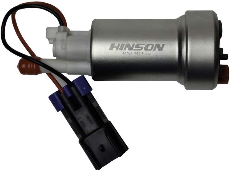 High Performance E85 Compatible 450 lph Intank Fuel Pump With Installation Kit and StrainerThe HINSON Motorsports 450LPH fuel pump is fully E85 compatible and one of the highest flowing fuel pumps on the market. It is designed to meet the demands of late model performance street and race cars. The pump has a quiet design that allows it to work in your daily driver or all out race application.Our 450lph pump is designed on the F90000274 which has a higher pressure relief valve. This is crucial for high output fuel systems commonly found in late model turbo applications. Many late model model fuel systems start at 60psi (LSX-based) and rise with boost pressure as determined by your fuel pressure regulator.The F90000274 uses a check valve to prevent back-flow and keep your fuel system primed. This stops those annoying "hard to start" moments of priming a fuel system.The 450LPH fuel pump is roughly the same dimensions of the popular GSS340, GSS341, and GSS342 fuel pumps and many OEM fuel pumps. However, the base of the F90000274 is larger and will require effort to fit inside a stock fuel pump housing. In many cases, the stock fuel pump assemblies are made of plastic and need to be "strategically broken" for an aftermarket pump to be installed. If you're looking for a direct fit, check our new fuel pump installation systems for popular truck, SUV, and car applications.Common Names – Walbro 450, GST-450, 485, Walbro 465, 400E, 450 High PressureEvery pump is flow tested prior to packagingPressure Relief Valve Opens at 112psiE85 Compatibility - ExcellentMax Current Draw - 22 ampsHose Barb Size - 3/8"Built-in Check Valve- YesIncludes:HINSON Motorsports E85 compatible 450LPH Fuel Pump1 Flat pre-filter / strainer2 Hose Clamps2 wire crimp connectors1 wire connector with wire pigtail1 3/8" id rubber hose safe for E85 & gasoline, 4" long