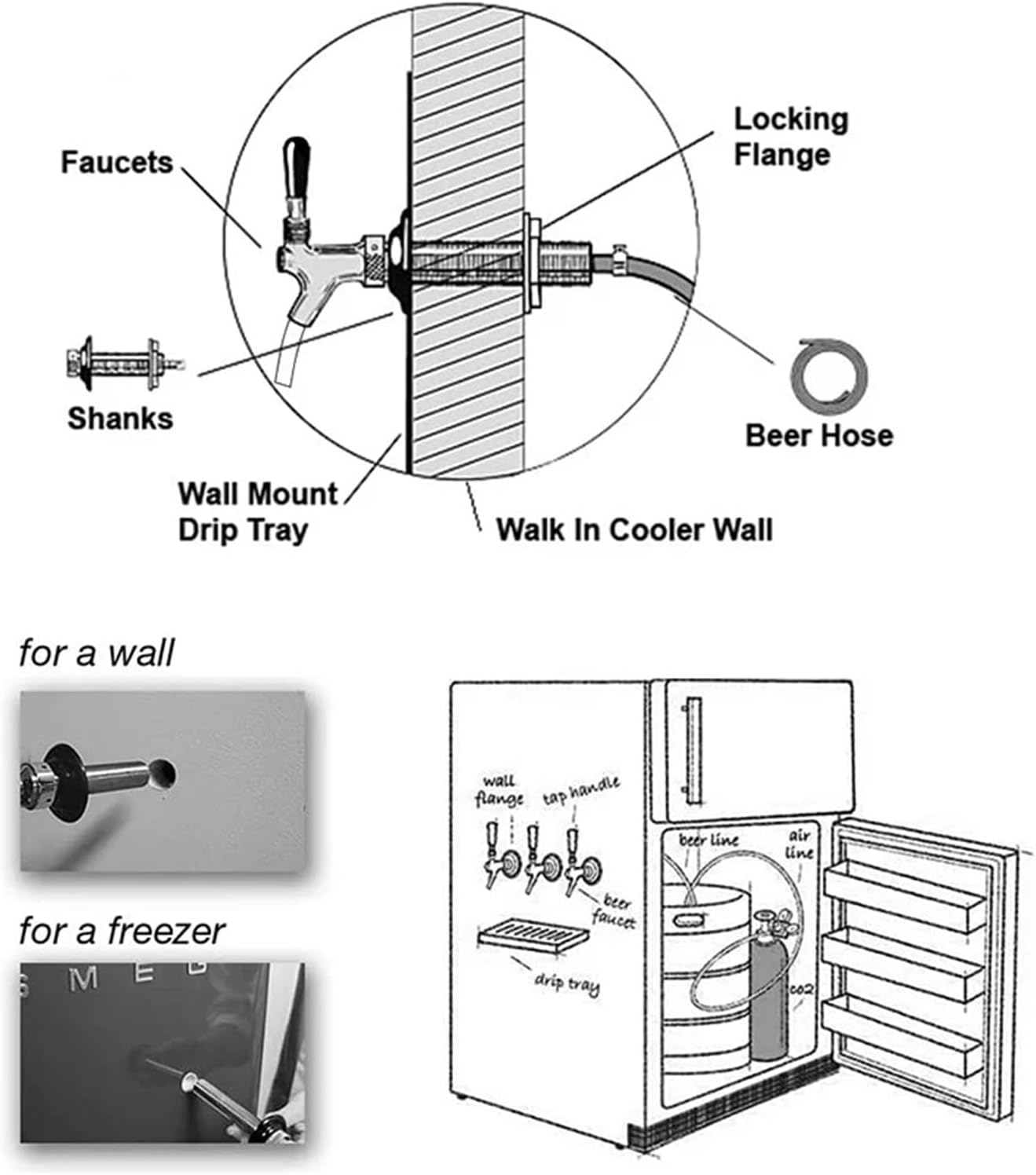 Adjustable Faucet Stainless Steel Core Draft Beer Faucet No-Rust for Kegerator Tower Wall for Homebrew 5/16 Barbed Fitting EndTake your party on the go with this portable beer dispensing faucet. Happy homebrewing!Items : Beer Faucet Shank : 100mm[Durable Material]: Made of Stainless steel, brass and 5-layer chrome plated, not only beautiful but also durable;[Flow Control]: Draft beer tap with flow control switch, G 5/ 8 thread;[Less Foam]: longer spout and smooth interior make it little foam; Stainless Steel Core is absolutely no taint of the flavor.[4 inch(100mm) Long Shank]: Long enough to install on your fridge, suitable for bars, hotels, restaurants, and home brew applications.Package includes:1* Beer Faucet==========Feature : Eco-Friendly,StockedQuantity : 1 pcsModel Number : Beer TapBar Accessories Type : Draft Beer FaucetCertification : CE / EU,CIQMaterial : Copper chrome platingType : Bar AccessoriesShank Length : 100mmWith : Flow Control valveFor : Beer Brewing /Beer Dispenser