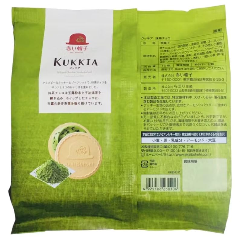 Smooth whipped green tea cream inside a lightly toasted wafer and texture crisp cookie- this is "KUKKIA". To achieve the lightly crispy outer we use our proprietary recipe uses less flour than conventional cookies. The smooth whipped green tea cream center is a result of many years of experimenting with the finest ingredients. This delicious creamy filling paired with the light crisp outer cookie is a satisfying treat without the guilt of a conventional cookie.