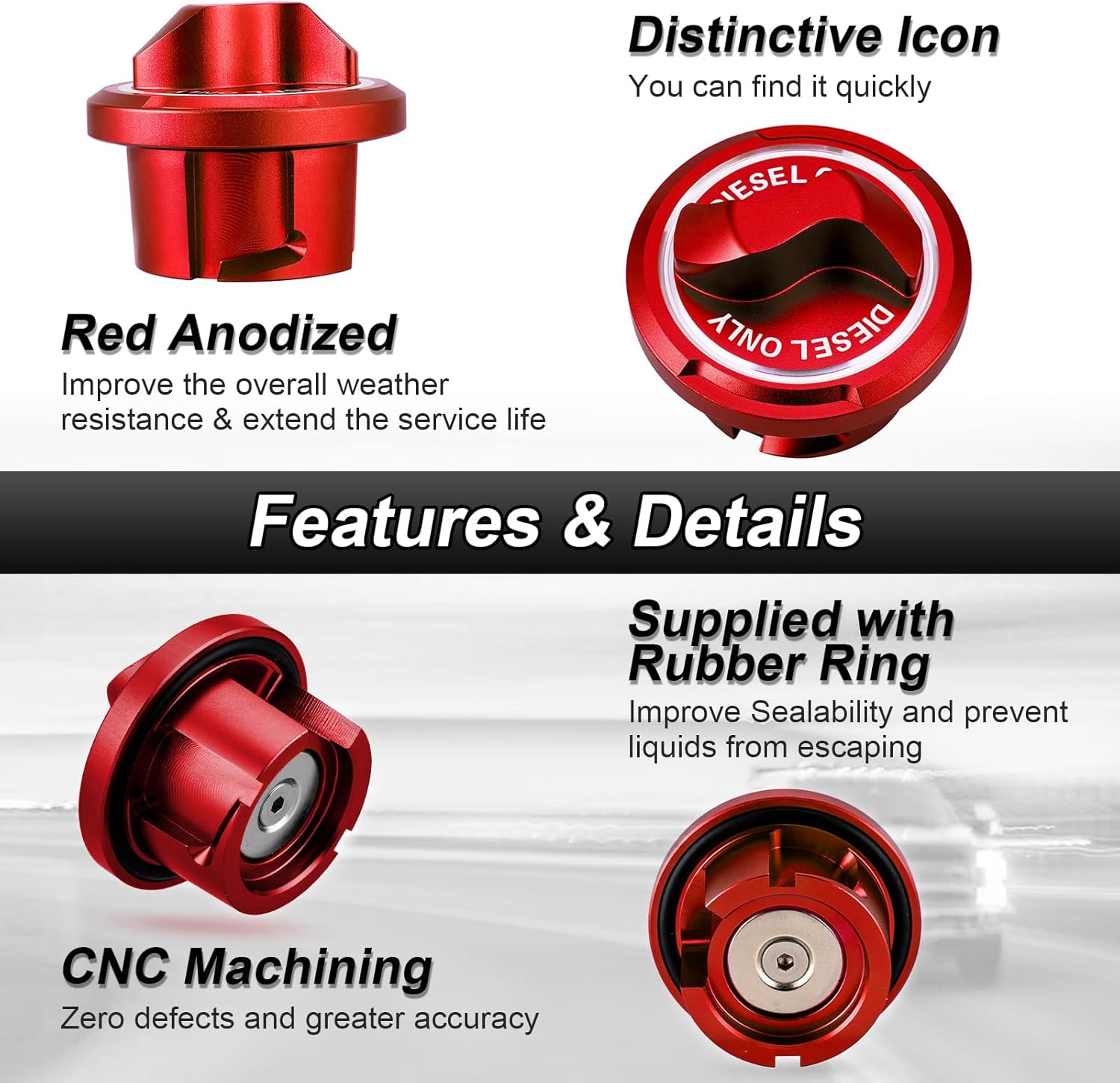 | Included Components | 1 x Red Aluminum Gas Tank Cap |