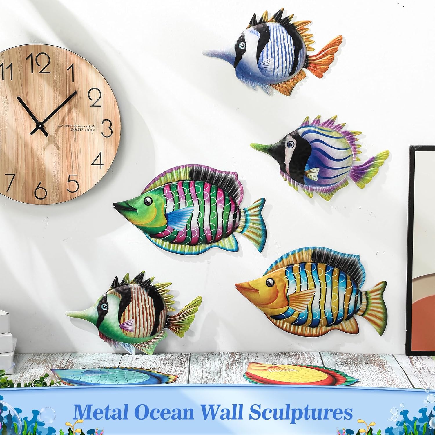 Features: Our multicolor metal fish wall art serves as a thoughtful gift for friends and family. Whether they love coastal themes or just enjoy cute home decor, these vibrant fish wall pieces are sure to win their hearts. Each piece of our metal fish wall art is a testament to exquisite craftsmanship. Showcasing detailed work and accurate painting, these fish wall decor items are not just decorative pieces but masterpieces that add elegance and appeal to your space. Specifications: Material: metal Color: multicolor Size: 30 x 17.5 cm/11.8 x 6.89 inch Package includes: 8 x Metal fish wall art Notes: Manual measurement, please allow slight errors on size. The color may exist a slight difference due to different screen displays.